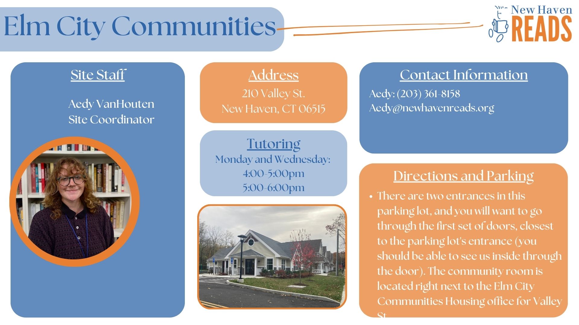 Founded to share the joy and power of reading, New Haven Reads partners with the community to provide free one-on-one tutoring, educational family support, and a book bank to empower aspiring readers to master the literacy skills needed to thrive in school and life.